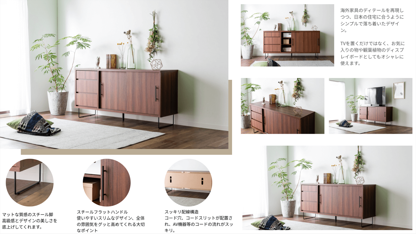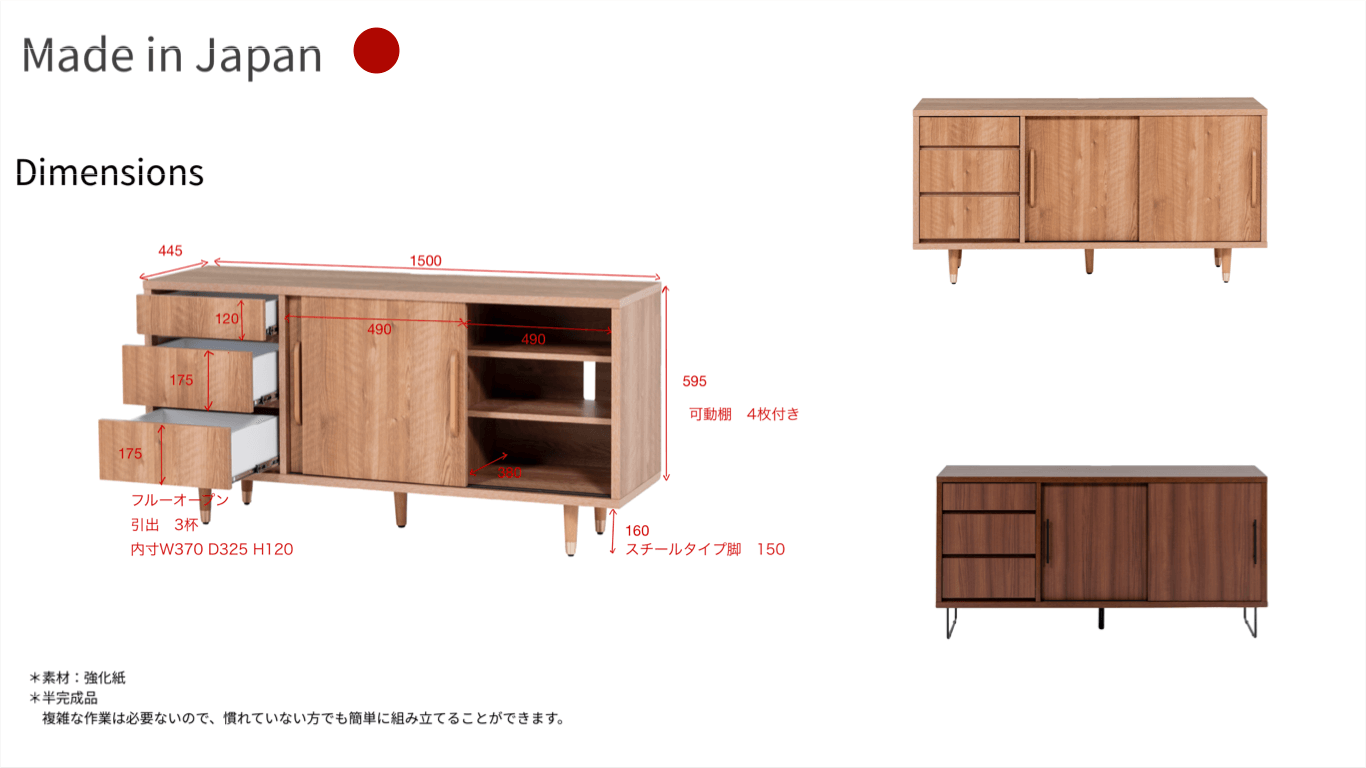 - 【商品について】収納力抜群の150サイズですが、圧迫感が無いデザイン テレビ台としても使用可能です カラーによって脚と取っ手も変えています。