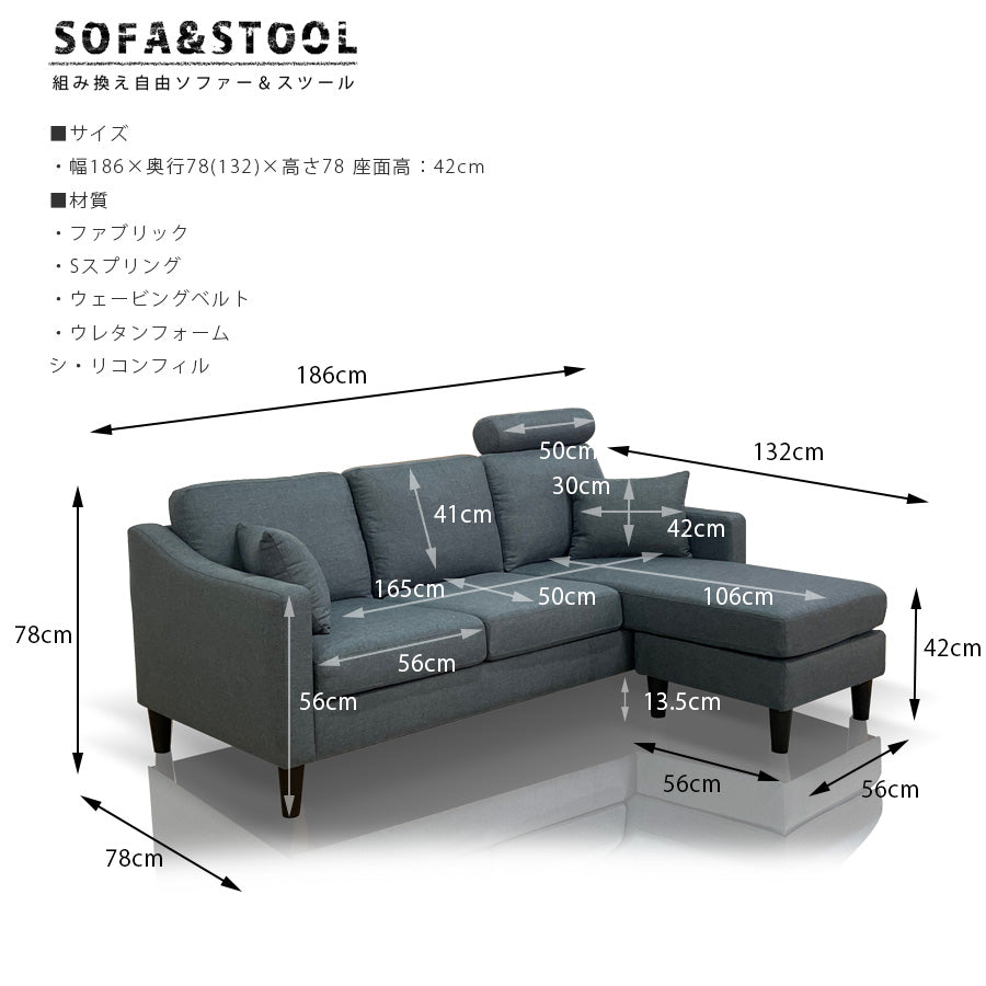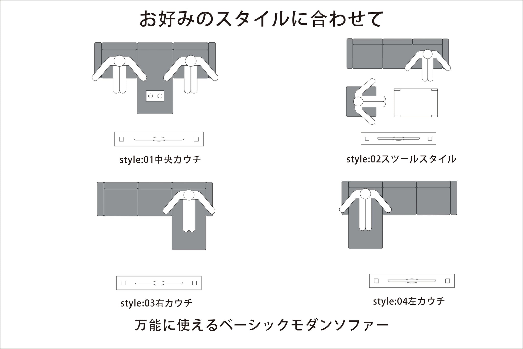 - 【商品について】カウチは右にも左にも出来ます 座面の組換えで3Pソファ+オットマンにも出来ます ヘッドレスト付き 選べる5色対応
