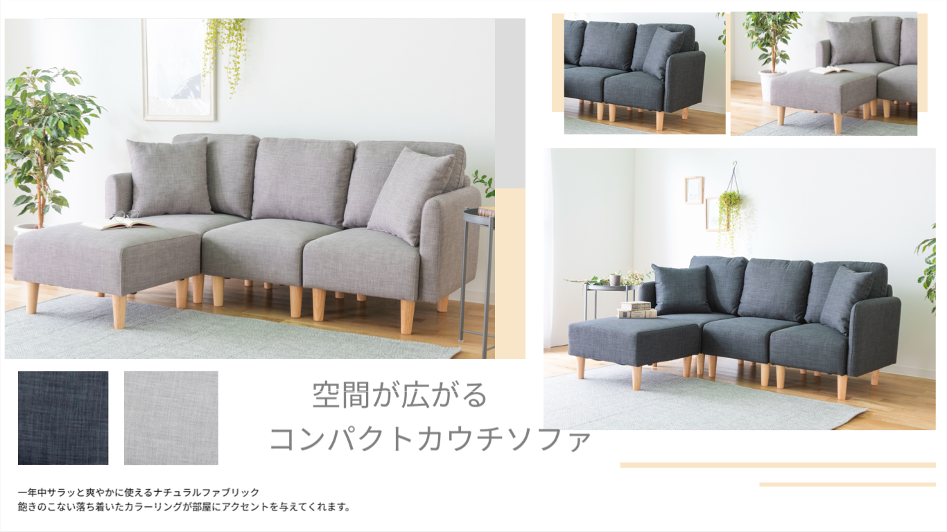 - 【素材】本体:ファブリック Sスプリング ウェービングベルト ウレタンフォーム 脚:天然木
